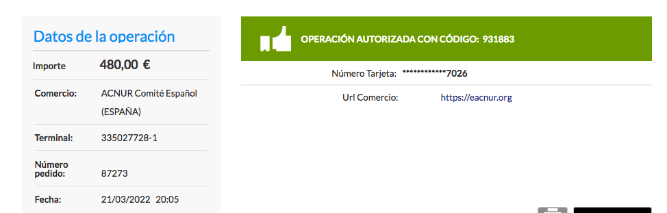 Acabamos de hacer el ingreso de 480 euros