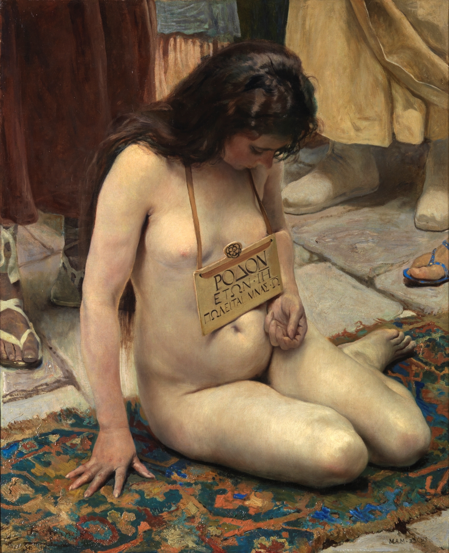 Viste el cuadro solamente una vez, de pequeña, en una exposición en Sevilla. Te impresionó. Ojalá no te hubiese tocado sobreponerte a impresiones de otra calaña. Hay noches que lo vislumbras en sueños: la mirada baja, ese reflejo de desamparo. Siempre te has preguntado qué busca en su mano. Despiertas para que usen tu cuerpo los descendientes de esas botas que la rodean. Tu venta no es definitiva pero las migajas que recoges tampoco alcanzan el precio que reza su cartel. Entre sudor rancio y lágrimas que se desvanecen, intuyes la búsqueda. Los ojos, la mano, el vacío.