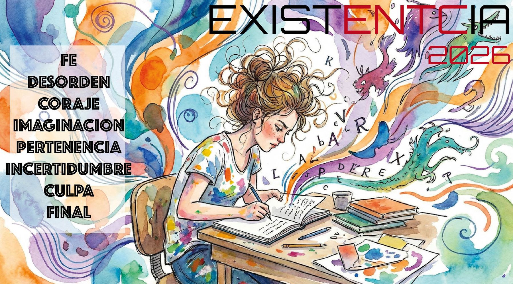 Este año le hemos propuesto a la IA que juegue con la EXISTENTCIA HUMANA a través de conceptos abstractos que resulten un buen alimento para vuestra creatividad. De todos los que nos propuso hemos filtrado muchos de los ya propuestos y hemos elegido 8 diferentes para nuestras propuestas de 2026.