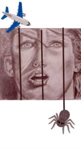 Y en este trayecto de 6 semanas nos acompañará como inspiración plástica oooootra preciosa ilustración de María José Escudero, otro trabajo con acrílico en el que ha logrado mostrar ese sentirse atrapado en el horror ante asuntos que pueden ser medianamente razonables hasta otros que son de pura rutina para otros. Gracias, María José, por habernos traído la inspiración de tus pinceles en este 2025.