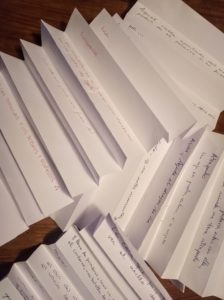 El pasado sábado 4 de marzo, durante los postres de nuestro almuerzo en la taberna La Montañesuca, llevamos a cabo este entretenimiento, tal y como nos había propuesto una de las participantes. Se trataba de de crear nuestros propios cadáveres exquisitos, los de este ENTCuentro.