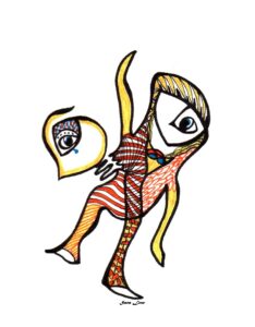 Y en su desarrollo, y para aquellos que encuentran también la inspiración en las líneas, formas y colores de las imágenes, contaremos con una nueva ilustración de Sara Lew en la que encontramos ese camino estrecho e intimo que se encuentra a veces entre la dualidad y la más sencilla singularidad. Gracias Sara.