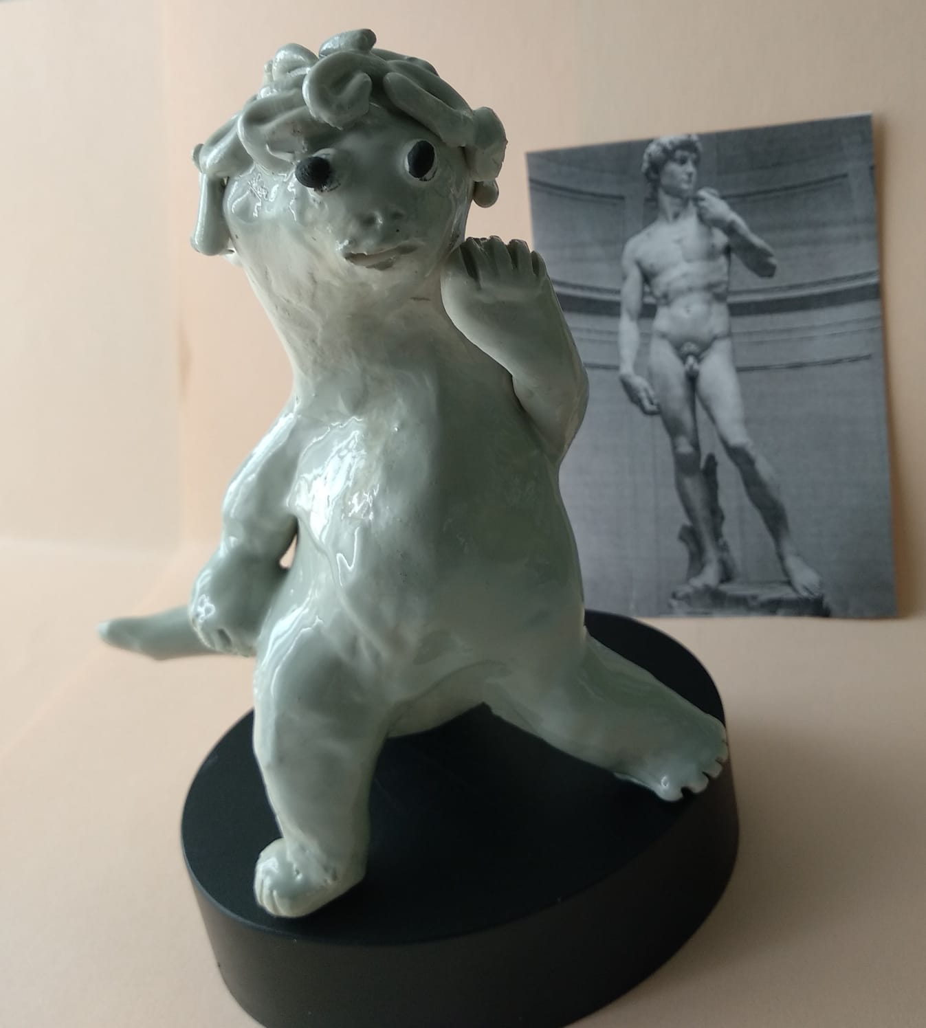Tuvieron que bajarlo tres empleados municipales. Se había quedado tieso con el dedo apuntando al cielo. Su hidalga figura adorna ahora la plaza del pueblo.