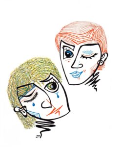 Y si sois de dejaros inspirar también por las imágenes, pues podéis quedaros con las líneas, formas y colores que Sara Lew ha interpretado simbólicamente como esa antítesis extraña de la alegría que puede provocar la tristeza de los otros. Gracias Sara.